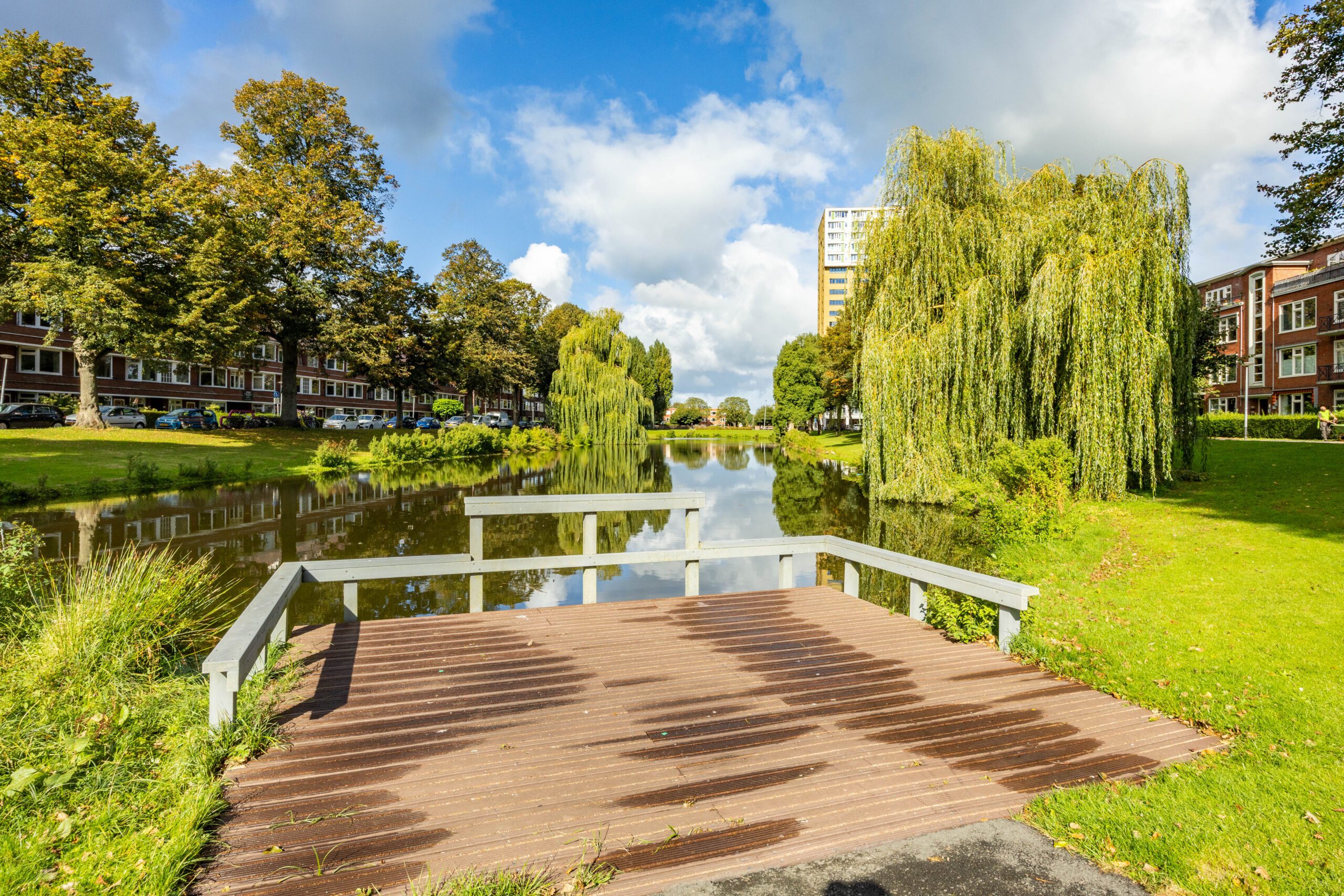 Begane grond: entree, hal met toilet en vaste kast, lichte en sfeervolle woonkamer van circa 20 m² met schitterend uitzicht over de Gorechtvijver, keurige dichte keuken van circa 5 m² v.v. inbouwapparatuur, twee slaapkamers van resp. circa 9 en 12 m² met vaste kasten, luxe badkamer (2021) met inloopdouche, wastafelmeubel en vloerverwarming. Via de keuken is er toegang naar de ruime tuin, tevens is er nog een vrijstaande stenen fietsenberging van circa 5 m².