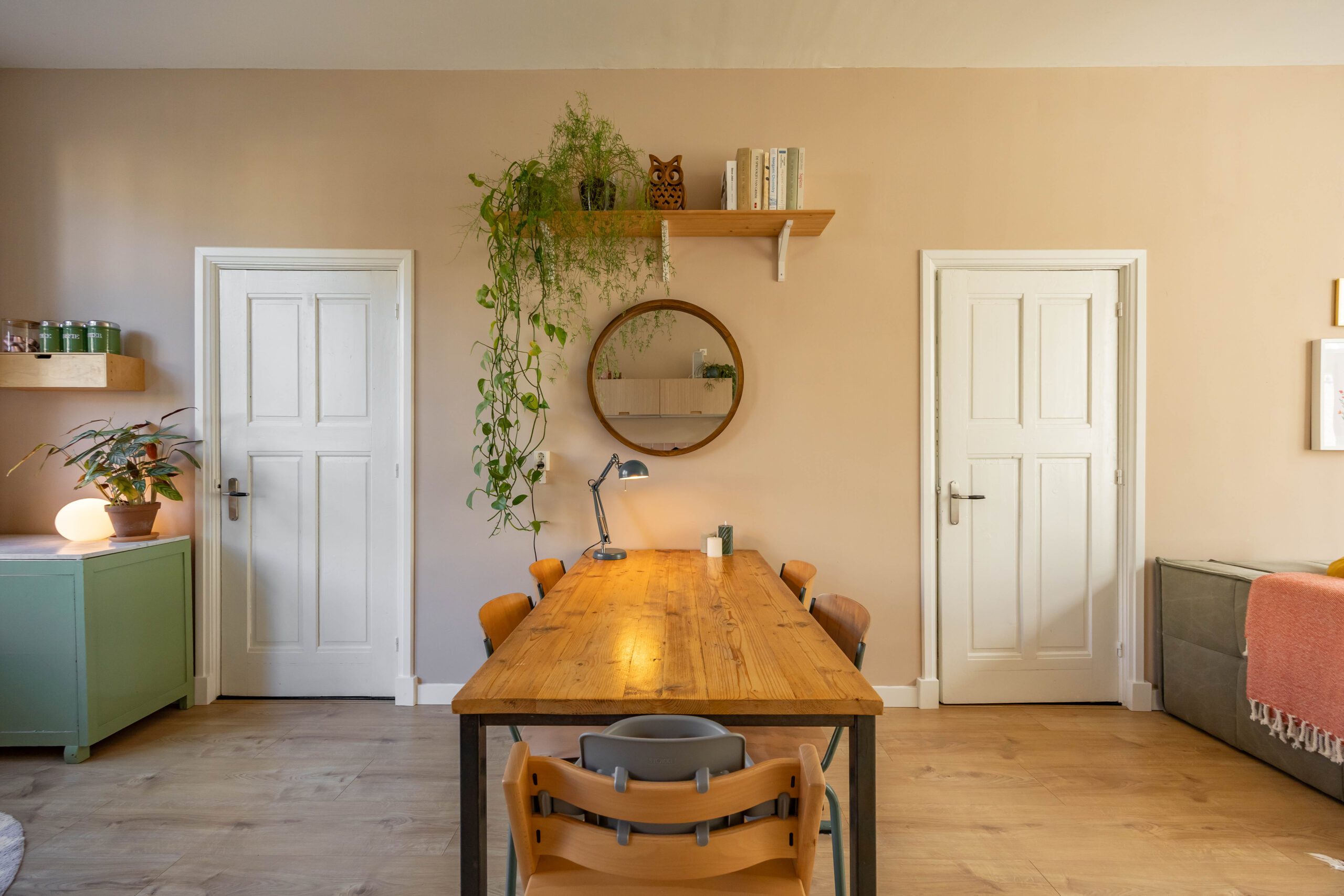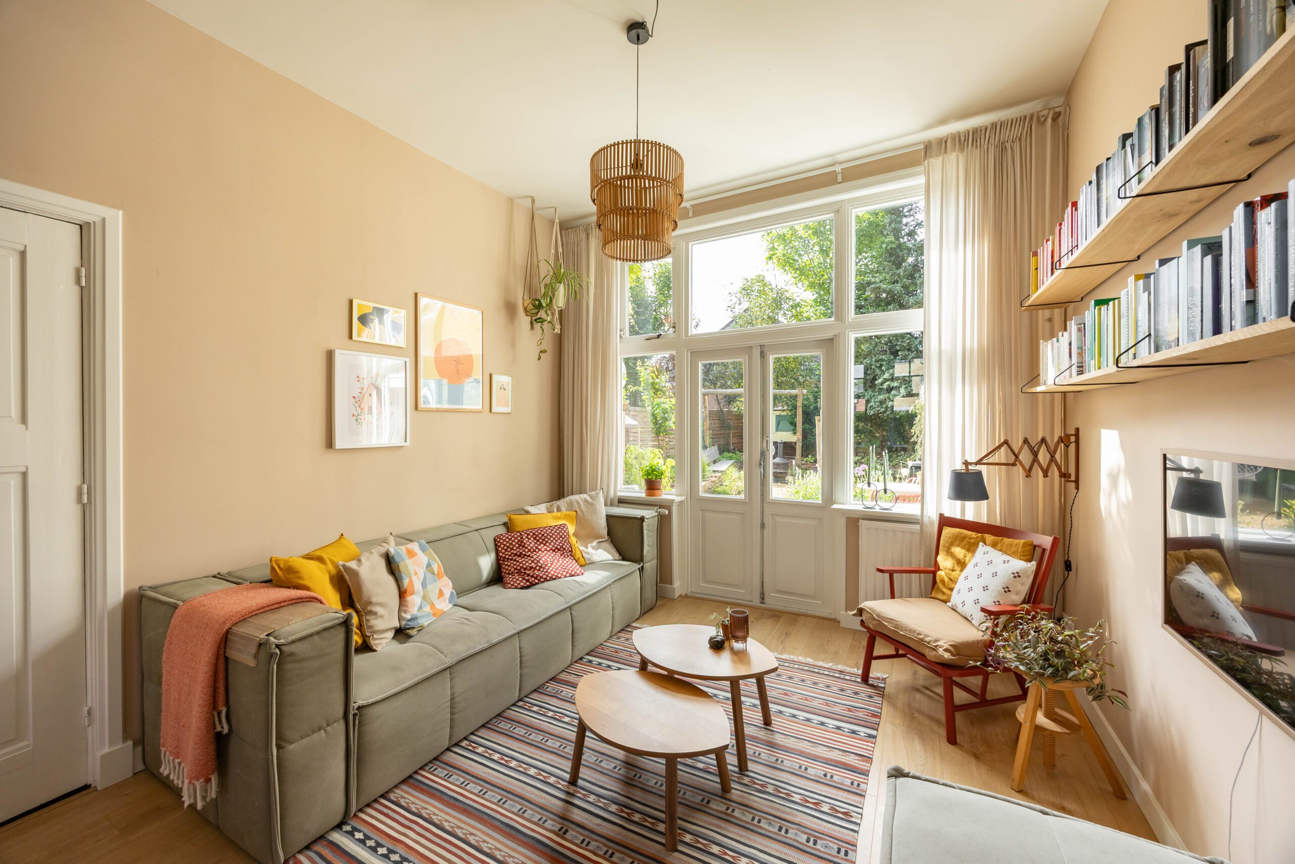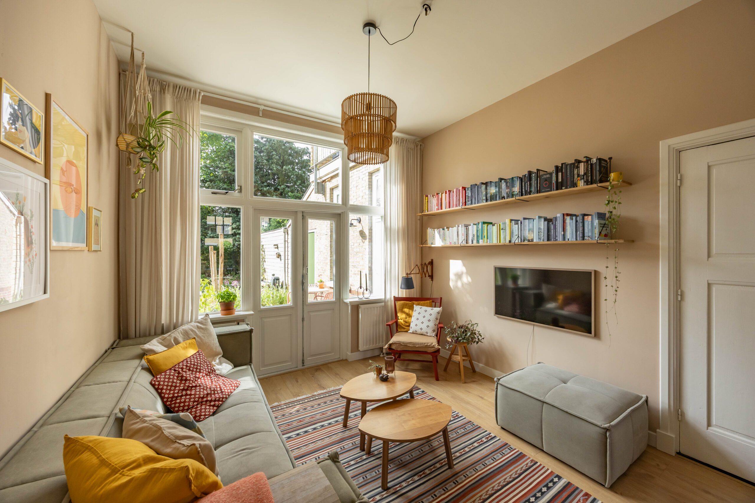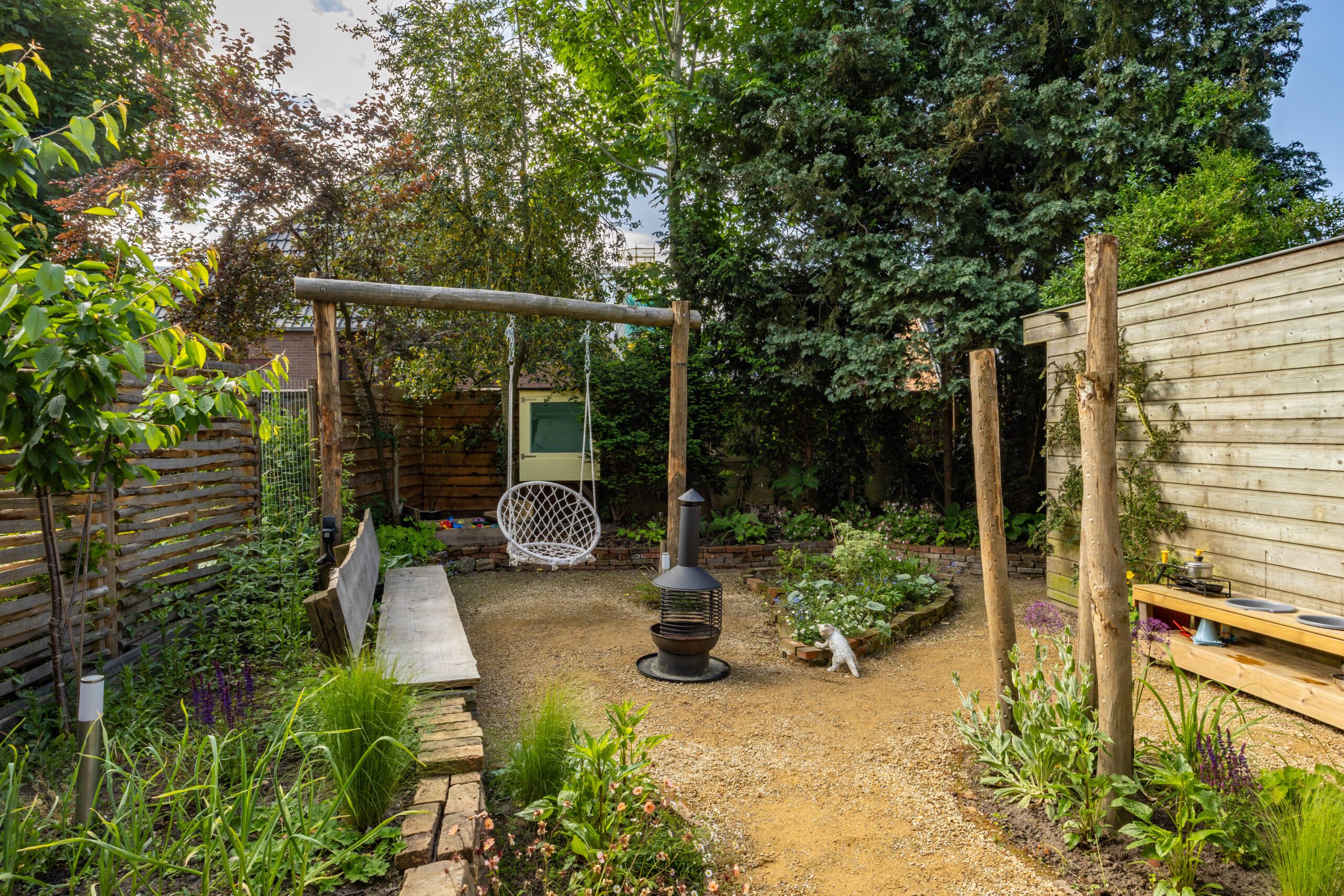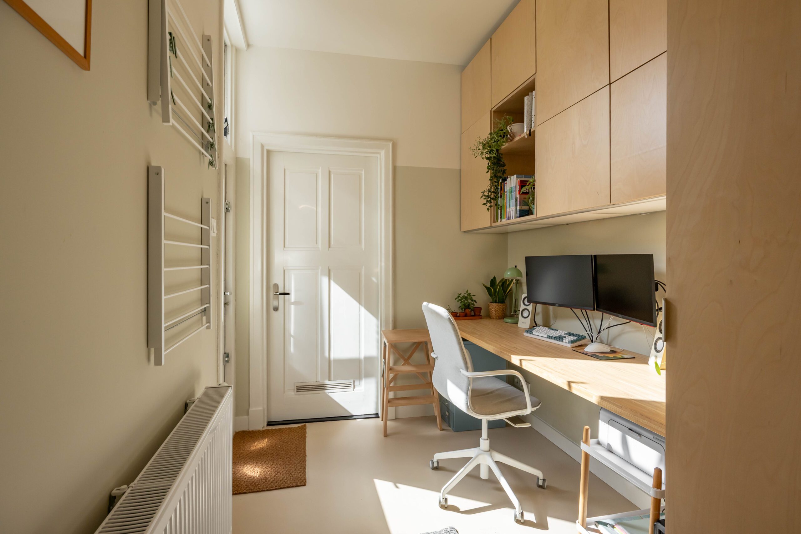 De lichte woonkamer met open keuken en openslaande deuren naar de tuin vormt het hart van het huis en ademt sfeer en comfort. De woning beschikt over twee fijne slaapkamers én een extra studeerkamer, ideaal voor thuiswerken of als hobbyruimte.