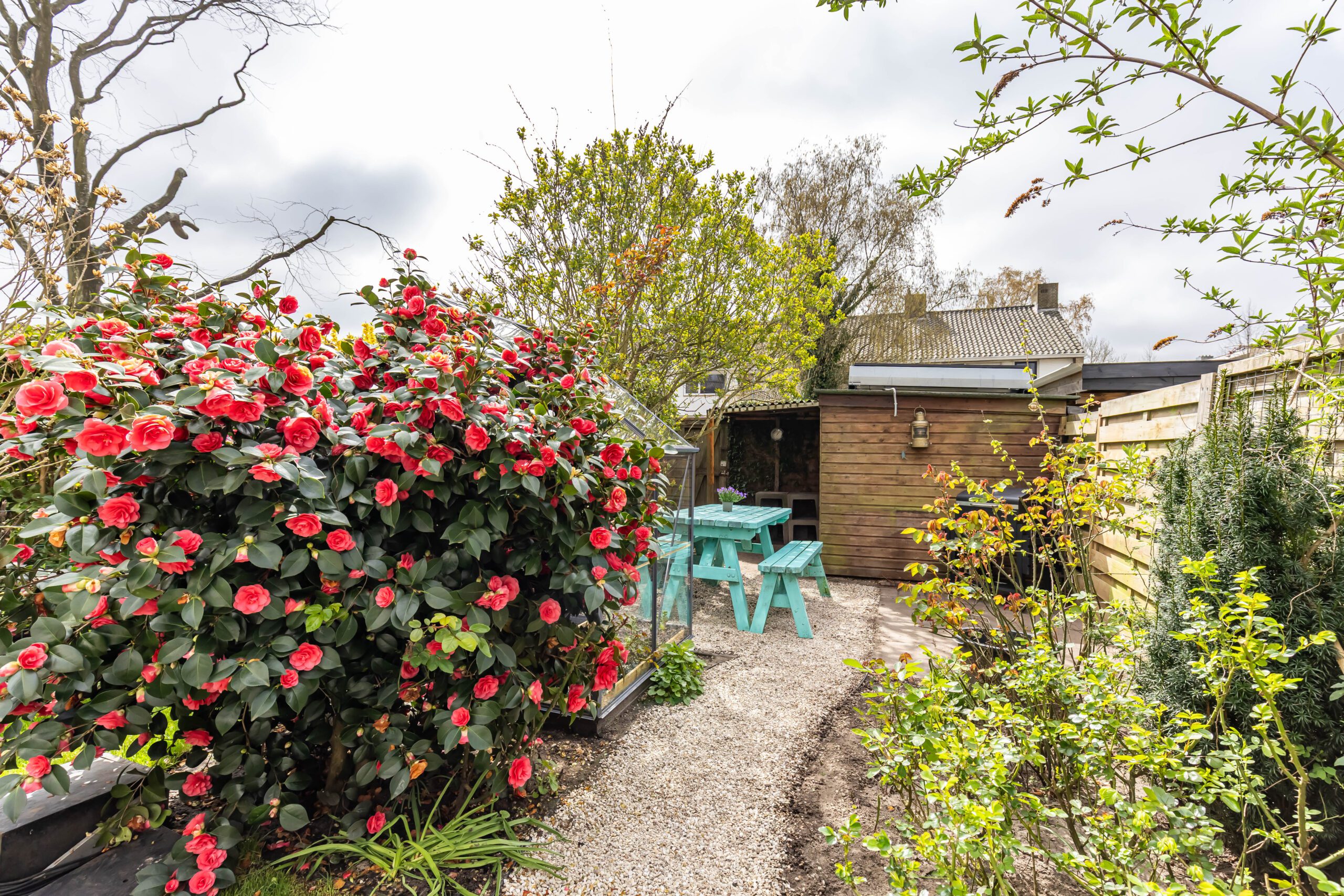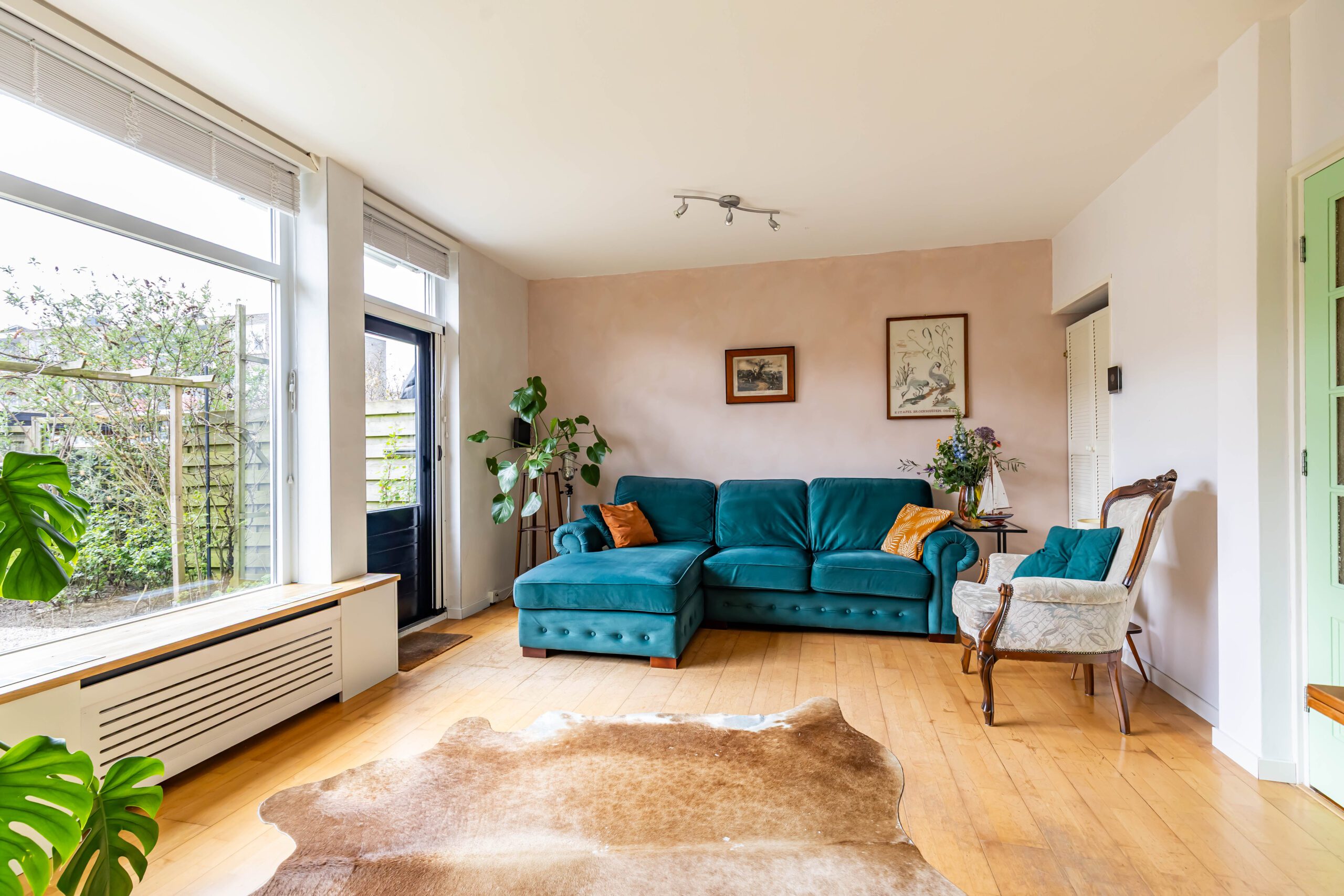 Begane grond:entree, ruime hal met wasruimte, gezellige woonkeuken (2021) van circa 12 m², toilet en kelder, woonkamer van circa 22 m² met deur naar de fraai aangelegde en zonnige tuin.