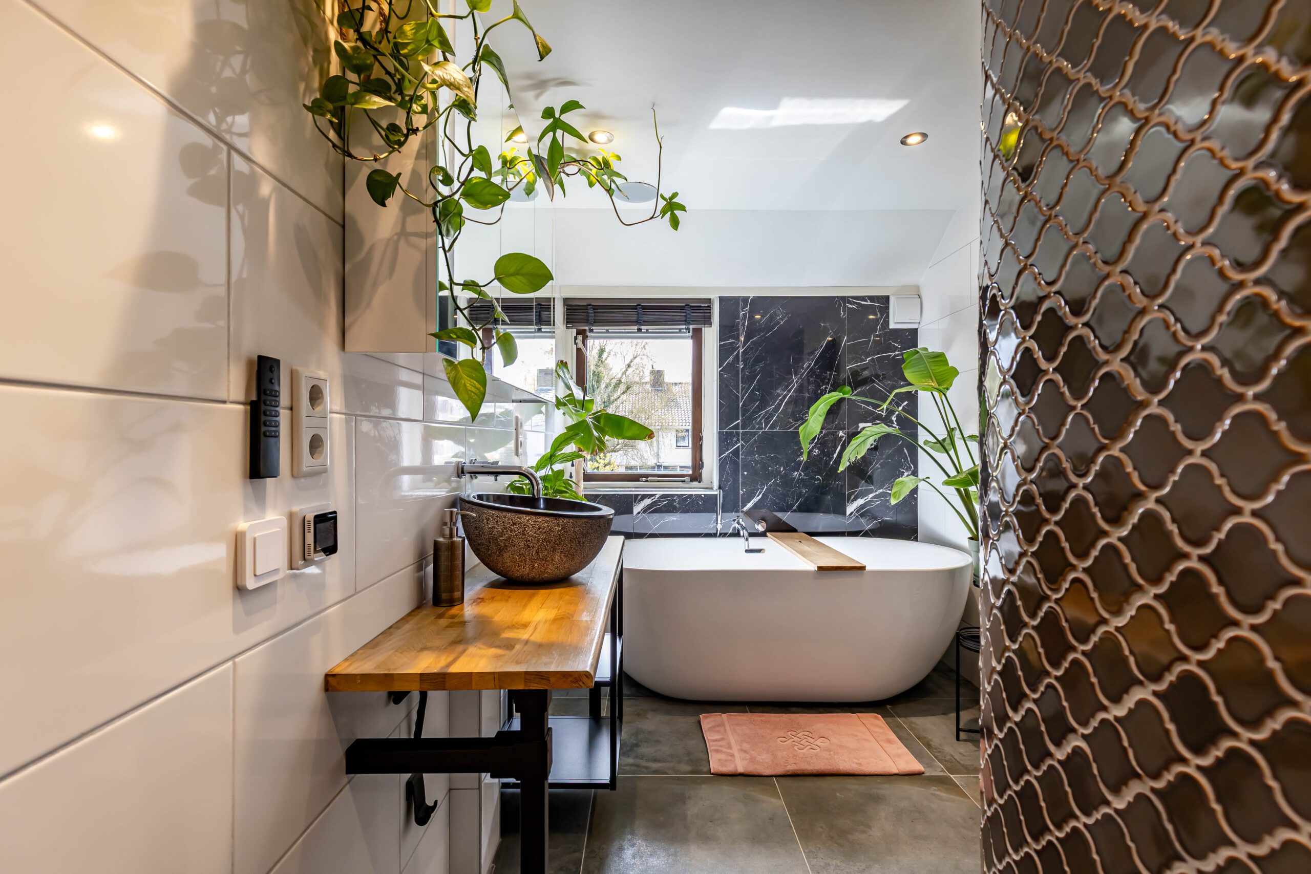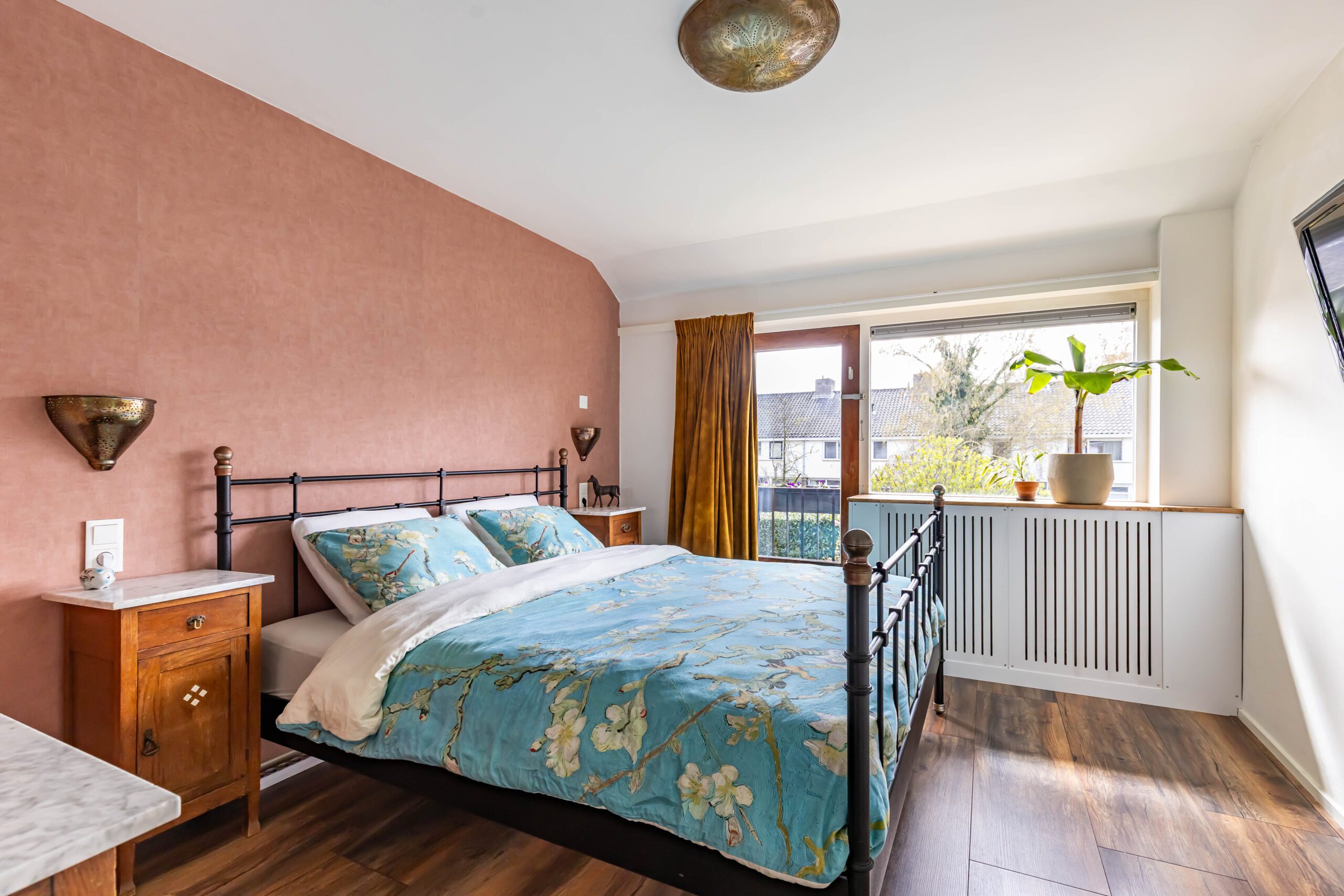 1e verdieping: overloop met toilet, drie slaapkamers van resp. circa 7, 10 en 13 m², luxe badkamer (2023) met ligbad, inloopdouche en wastafelmeubel.