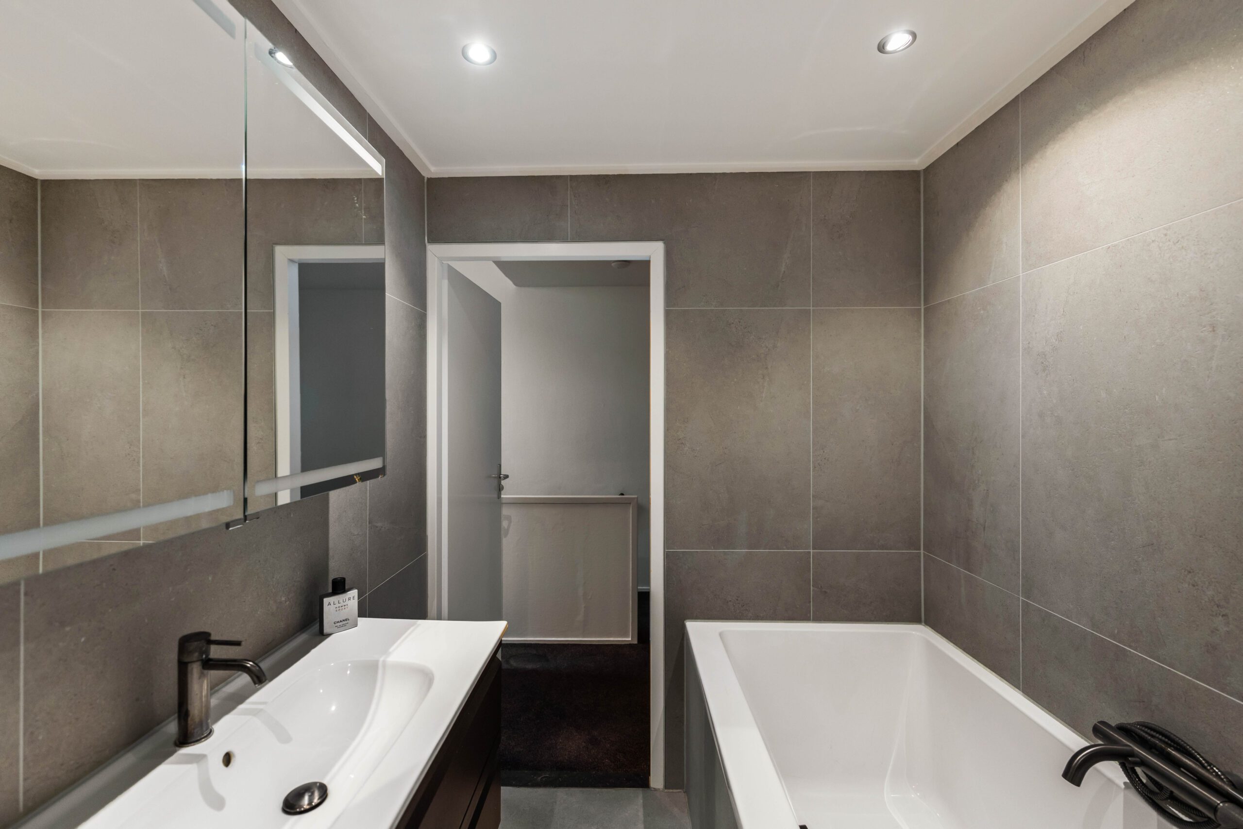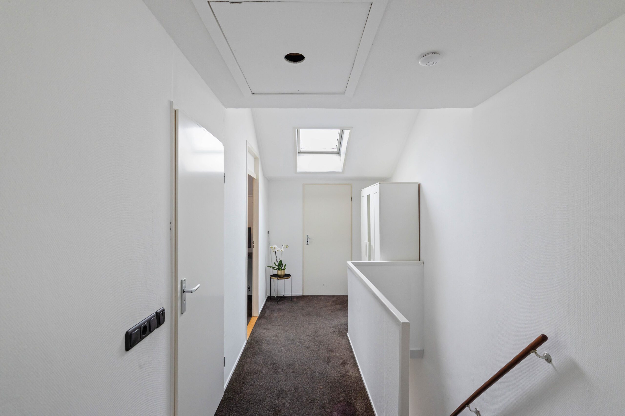 1e verdieping: overloop, drie slaapkamers van resp. circa 6, 10 en 12 m², luxe badkamer met ligbad, inloopdouche, toilet en wastafelmeubel, wasruimte.