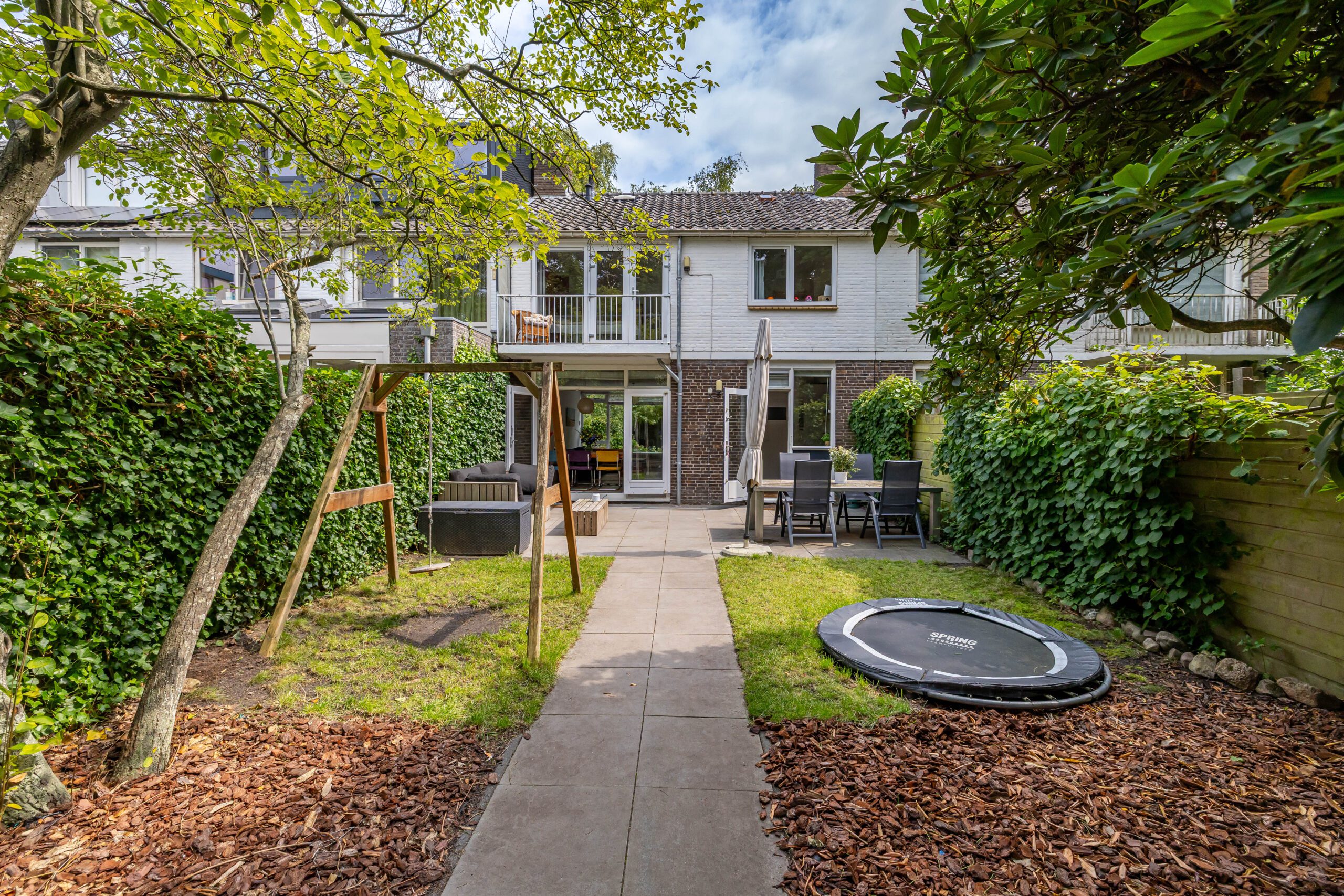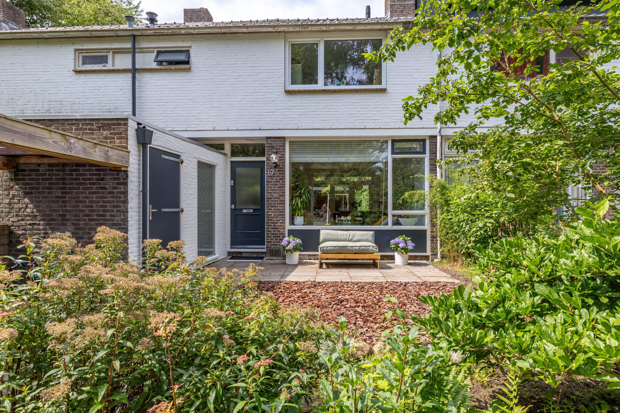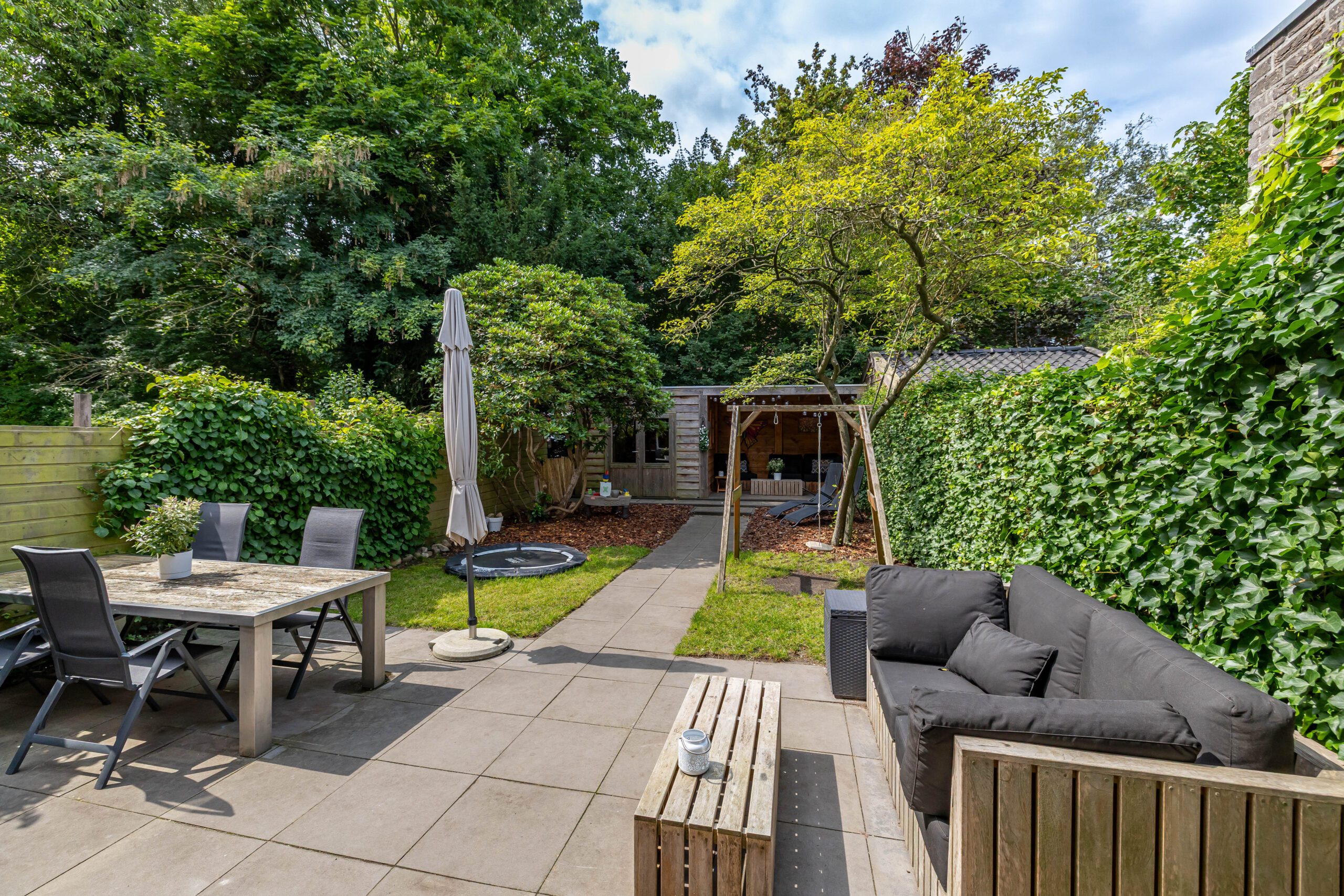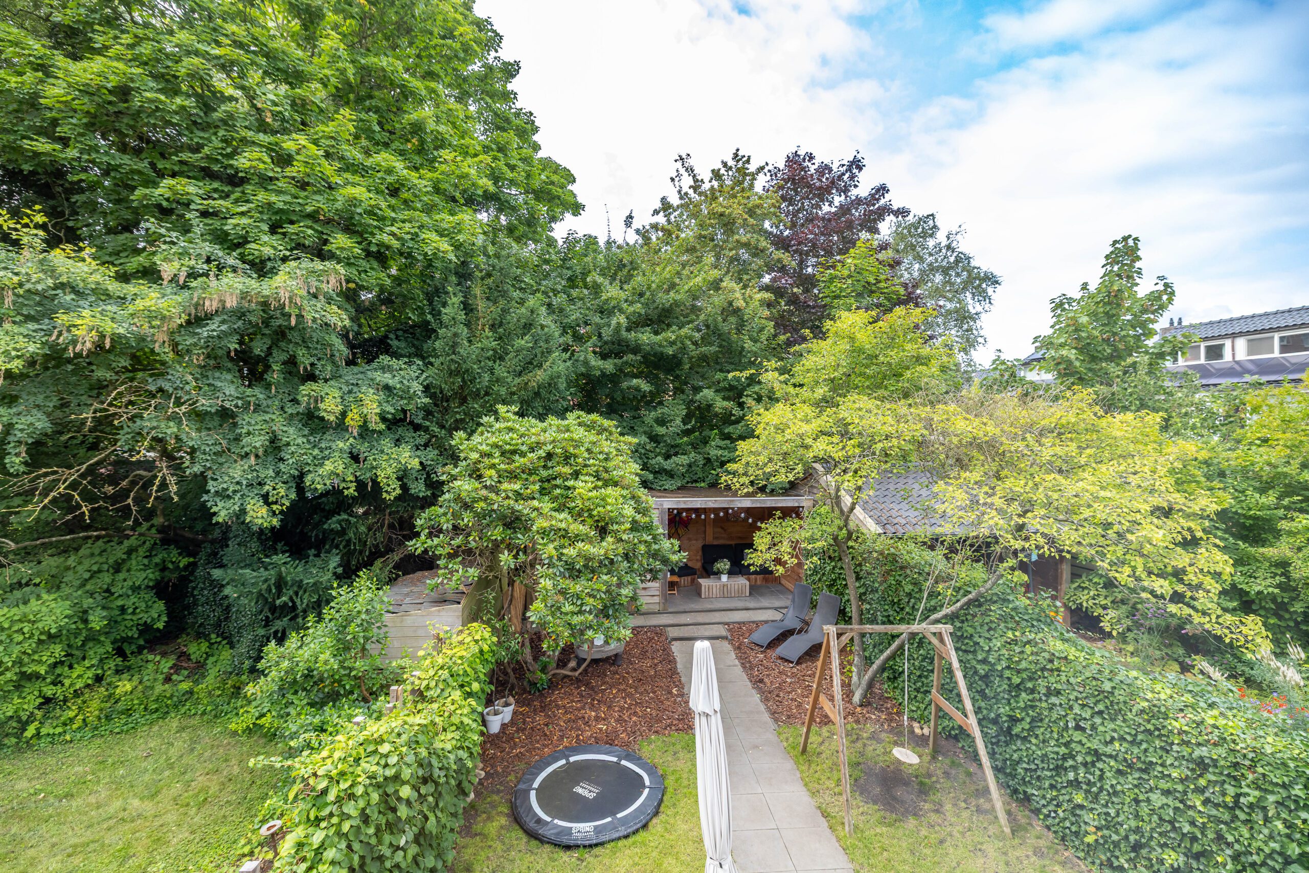 De achtertuin is een waar pareltje: fraai aangelegd met veel groen en dankzij de openslaande deuren voelt de woning in de zomer als één geheel met buiten. De hele dag zon, volop privacy én een knus tuinhuis met veranda maken dit dé plek om te ontspannen.