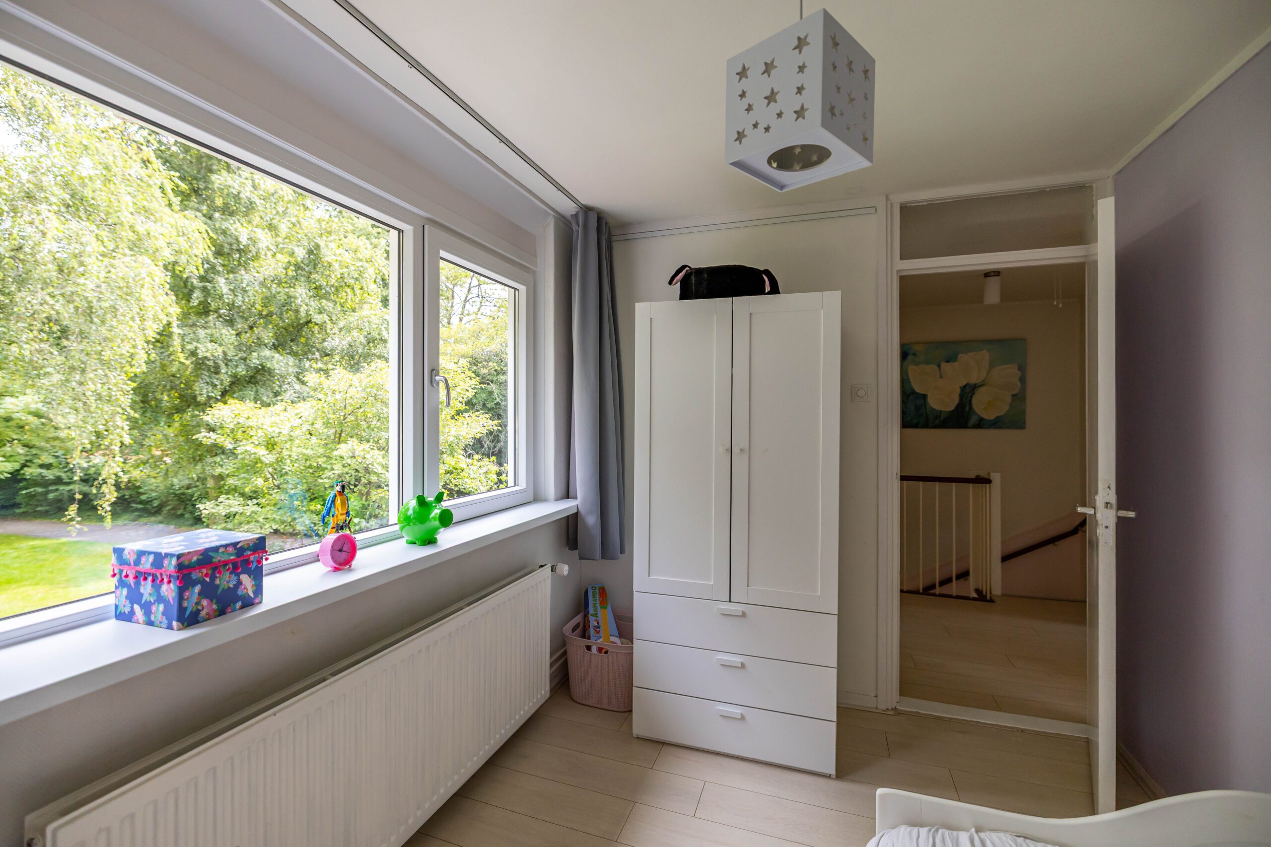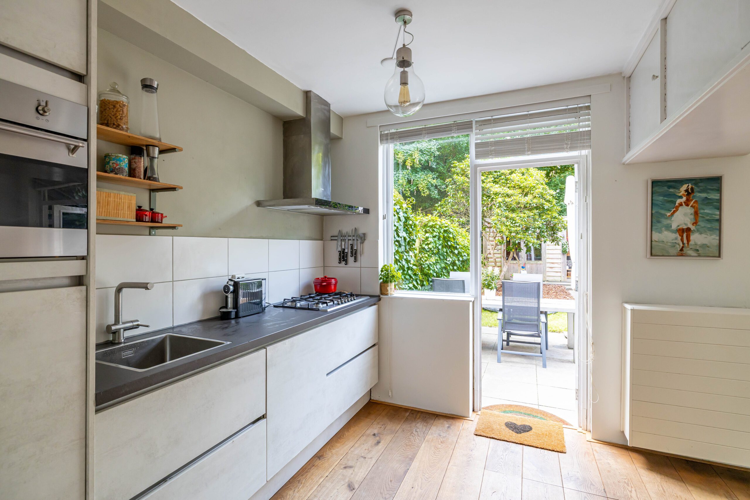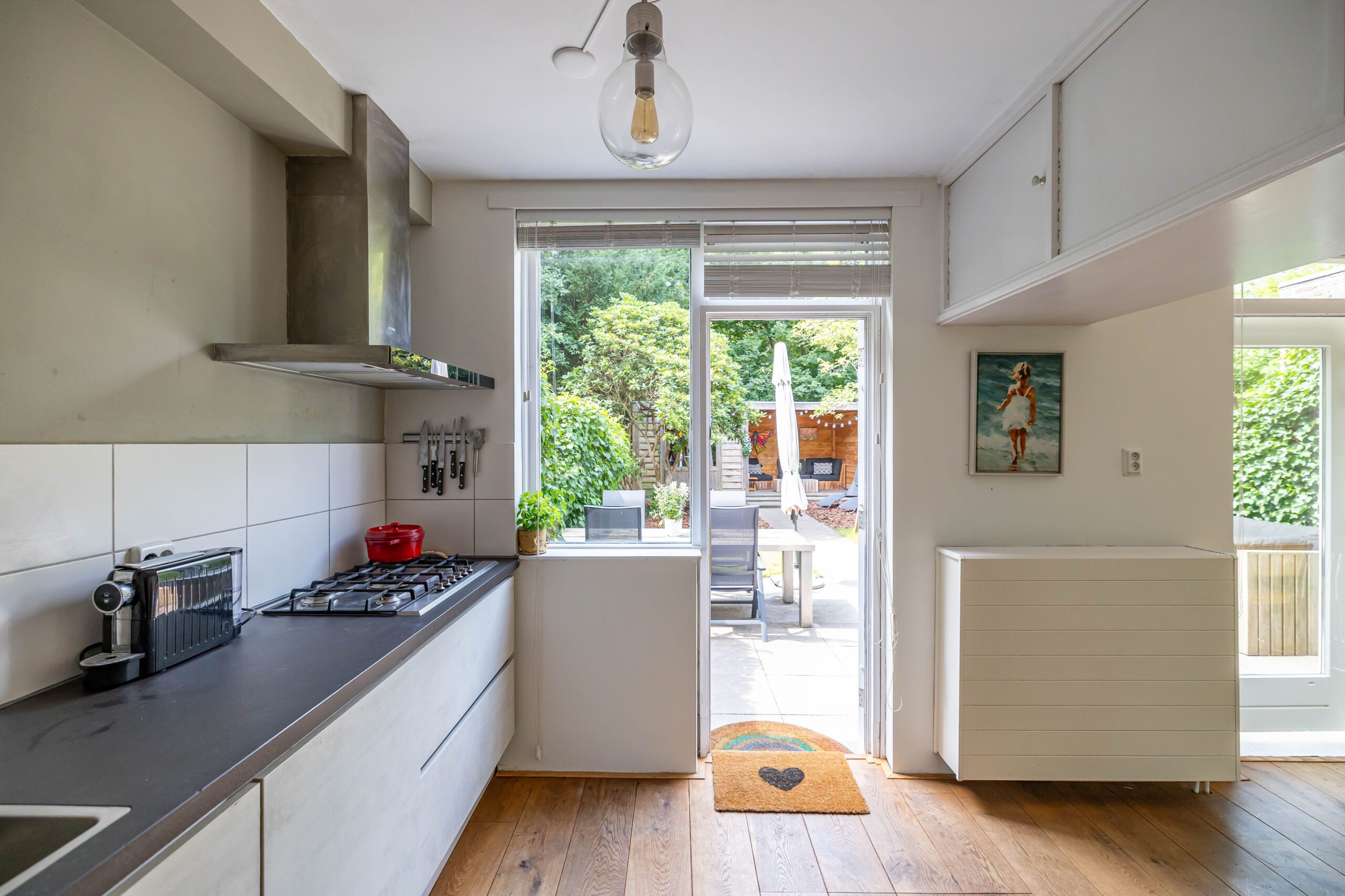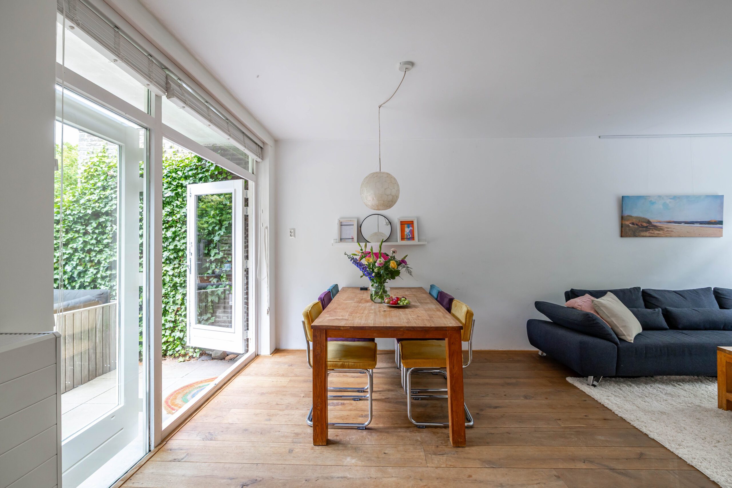 De achtertuin is een waar pareltje: fraai aangelegd met veel groen en dankzij de openslaande deuren voelt de woning in de zomer als één geheel met buiten. De hele dag zon, volop privacy én een knus tuinhuis met veranda maken dit dé plek om te ontspannen.