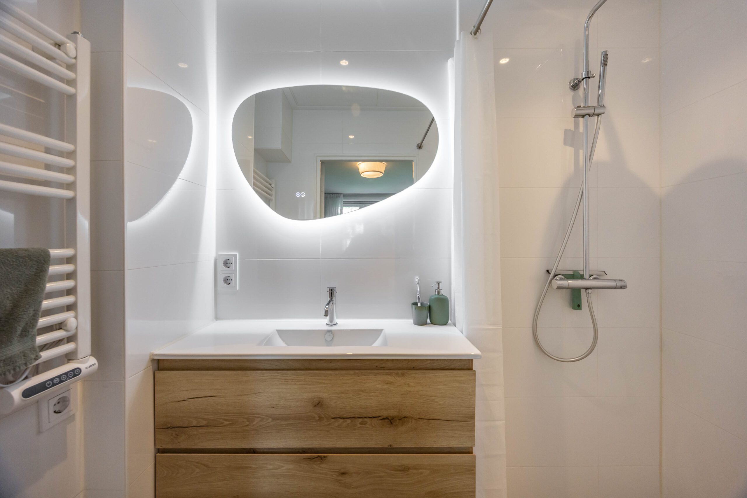 Bij binnenkomst valt direct de lichte woonkamer op en de strak gestuukte wanden en stijlvolle vloer geven het geheel een eigentijdse, warme uitstraling. De moderne badkamer voelt aan als een hotel en met twee fijne slaapkamers heb je volop ruimte voor logees, een thuiskantoor of walk-in closet.