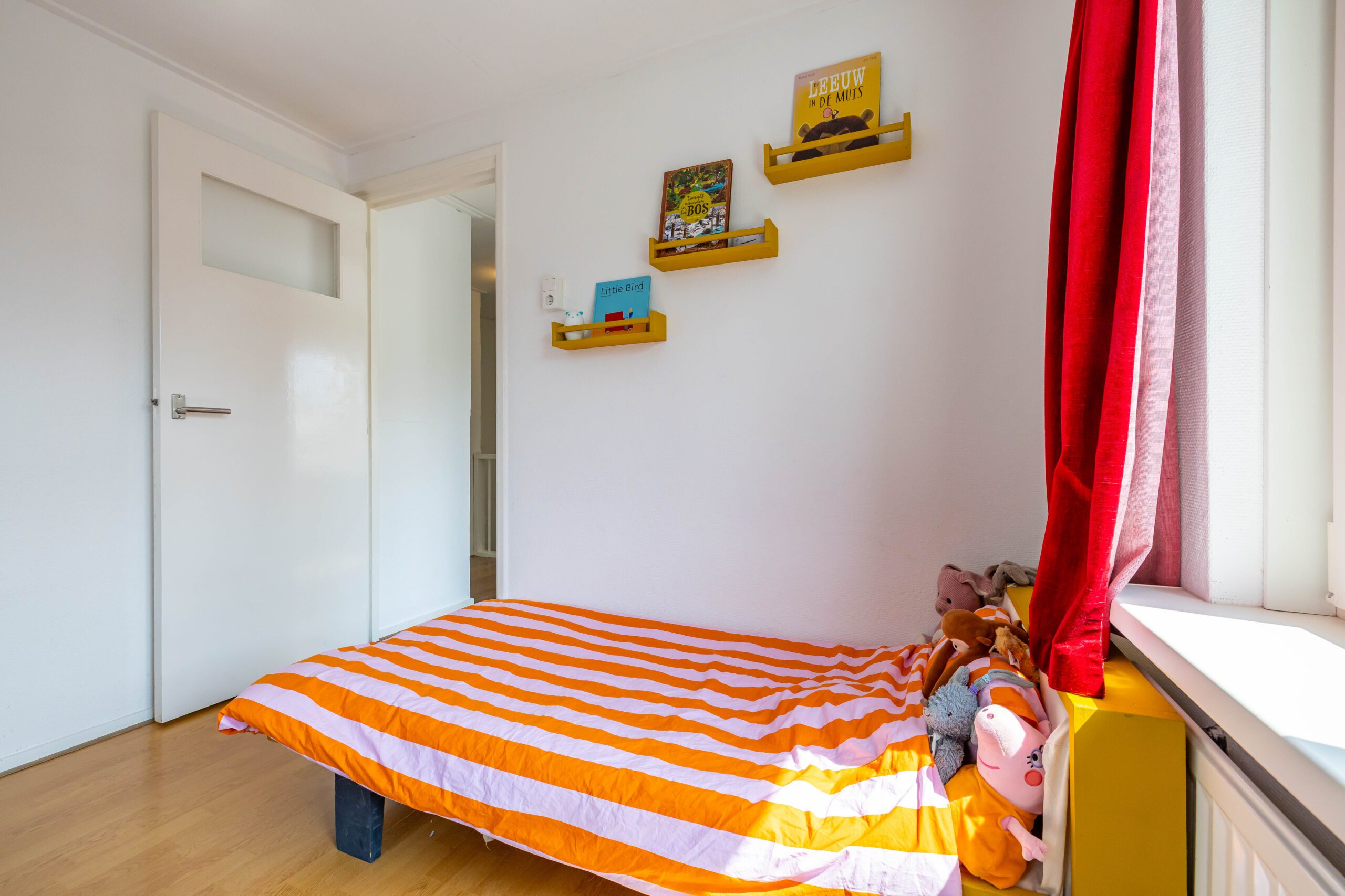 1e verdieping: overloop met vaste kast, drie slaapkamers van resp. circa 5, 8 en 10 m², nette badkamer met inloopdouche en wastafelmeubel.